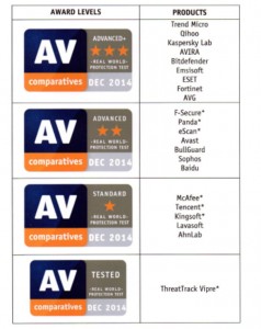 2014年12月公開ウイルス対策ソフト世界的に認知された評価機関のテスト結果(参考)